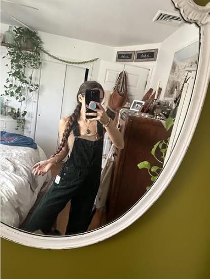 Our overalls fit true to size, but you can size down for a more fitted look or up for a looser, relaxed feel. For reference, our model is 5'8" and wearing a size M.